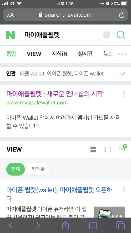 이후 본인 아이폰의 wallet 앱을 실행시키면