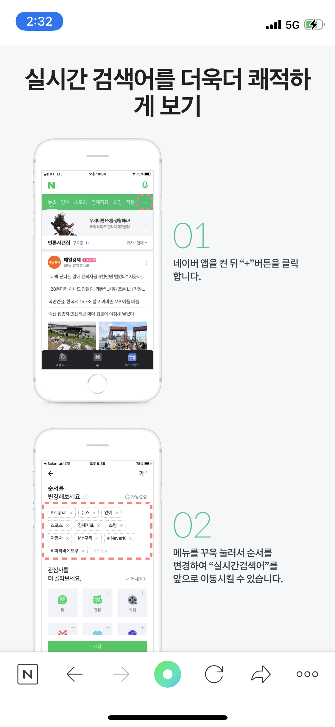밑에 이미지를 보고 네이버 앱에 추가하면 도움이 될 것 같다.