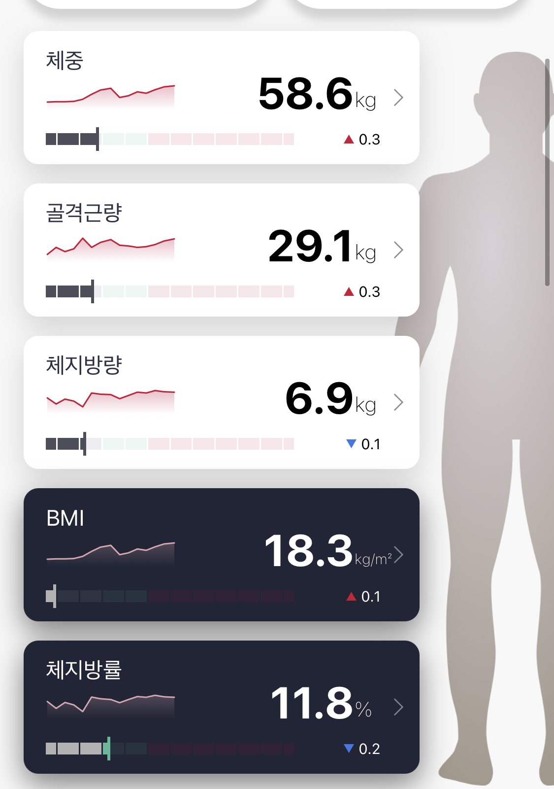 최근들어 골격근량이 다시 붙고 있고 이번에 다시 인바디를 재봤는데 체중은 58.6키로로 내 인생 최고 몸무게를 찍었고 골격근량은 드디어 29키로를 넘었다.
