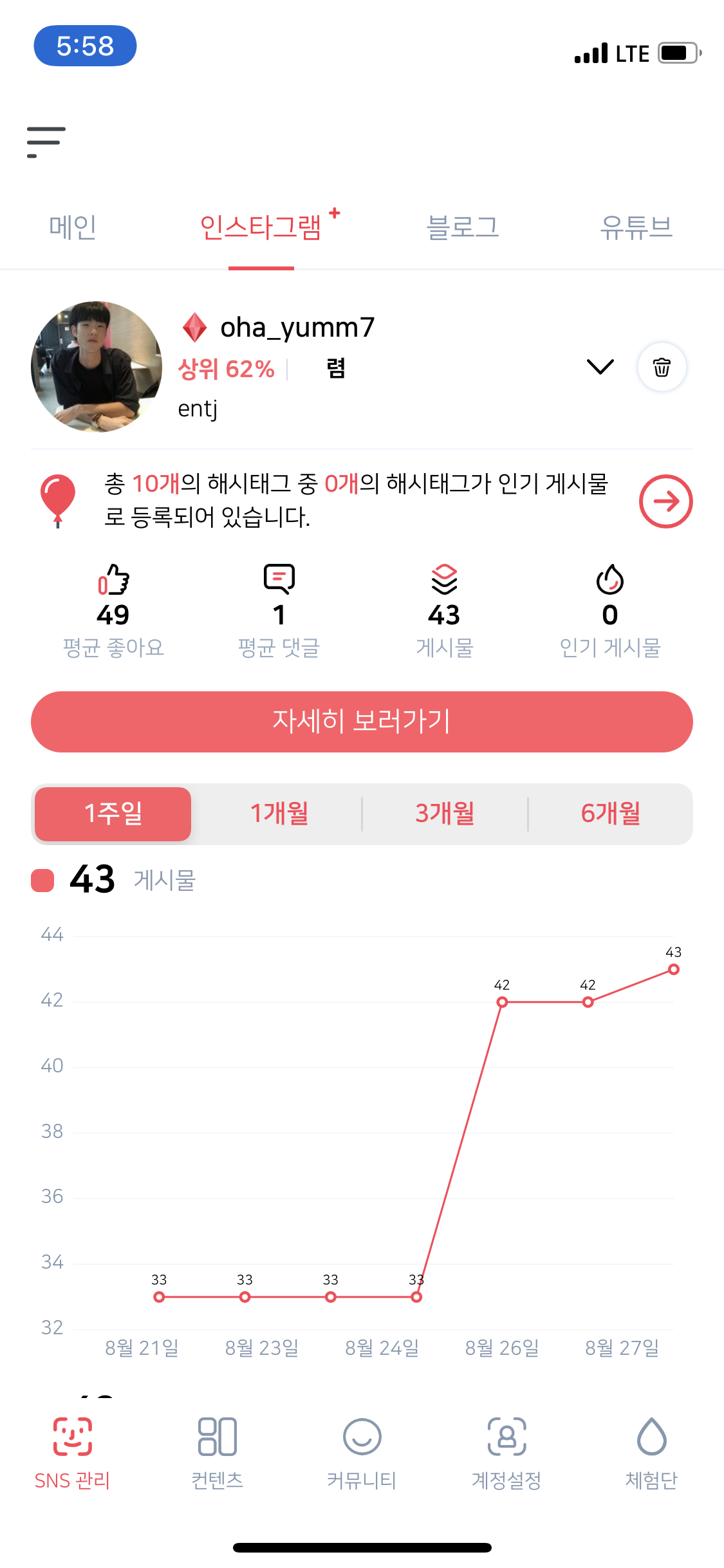 인스타그램 이외에 지원되는 SNS는 네이버 블로그(왜 티스토리는 없는데ㅠ) 와 유튜브를 지원해줍니다.