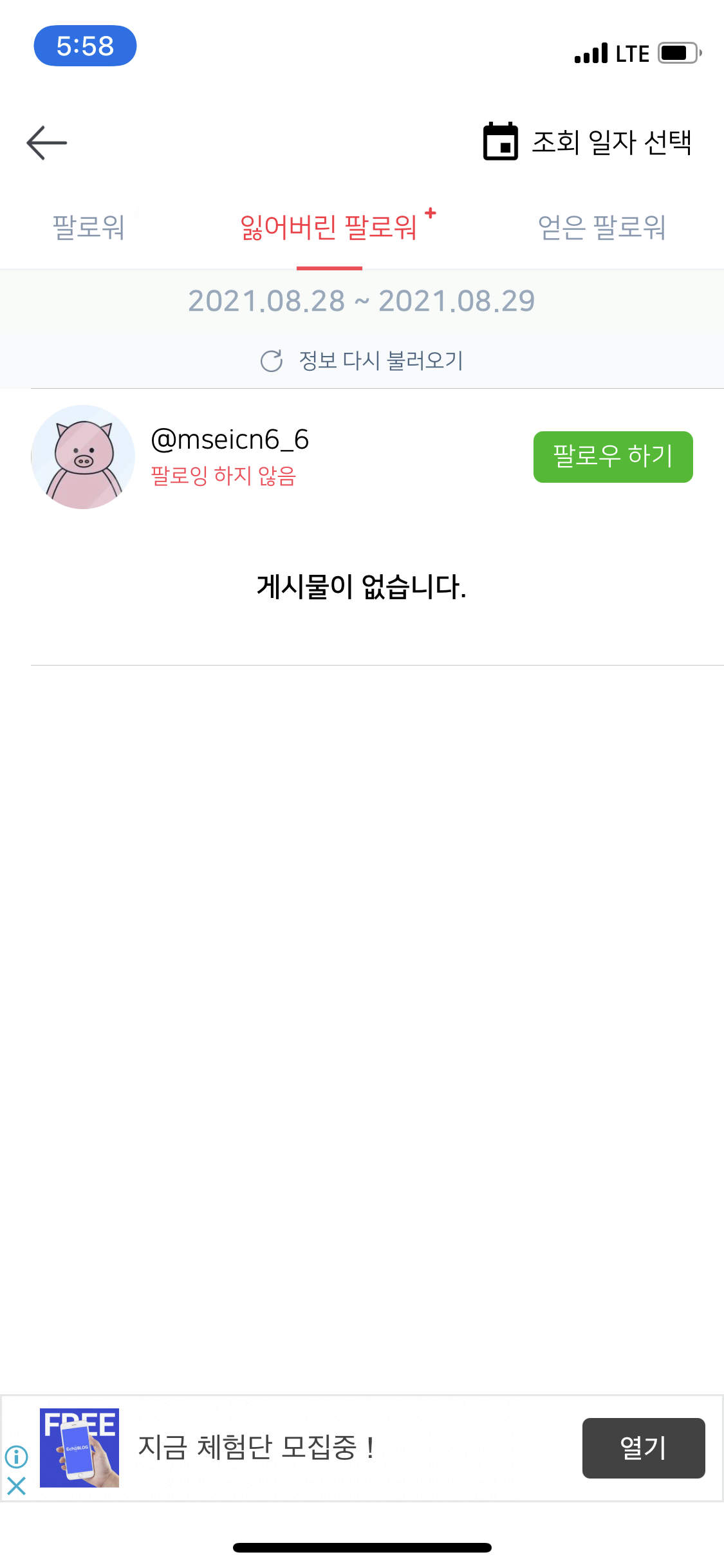 누가 언팔 했는지, 나를 팔로우 하지 않는 사람이 누구인지 확인 할 수 있으며 이러한 기능은 하루 최대 20회까지 사용할 수 있습니다. 결제를 하면 무제한인것 같은데 솔직히 결제해서 쓸만한 기능들은 별로 없는 것 같네요.