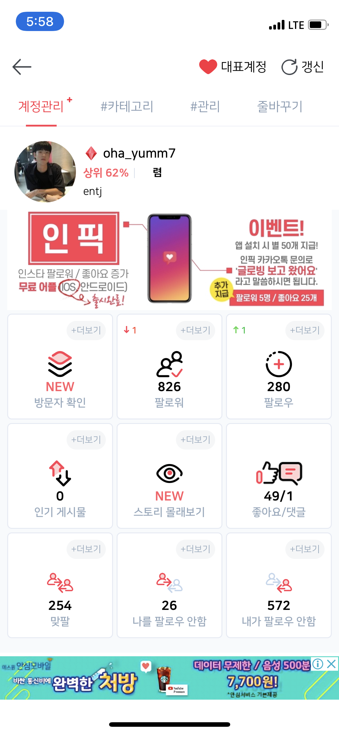 하지만 무료 사용자도 충분히 언팔관리에 있어서 불편함 없이 사용 가능하다는 점이 매력적이고,