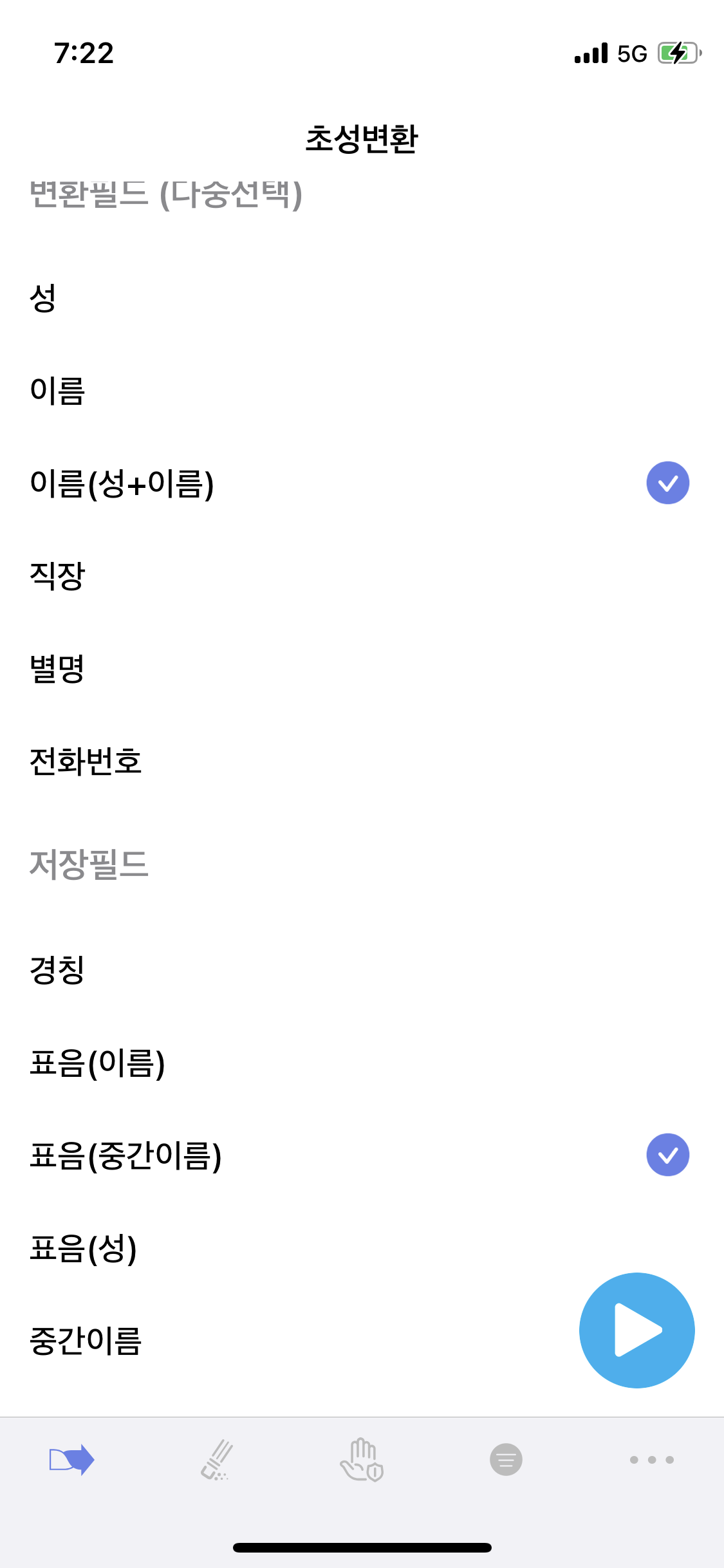 여기서 변환 필드와 저장 필드를 선택해주시면 되는데 변환 필드는 상대방의 이름, 저장 필드는 해당 이름을 초성으로 변환 후 저장할 필드를 지정해주는 곳입니다.