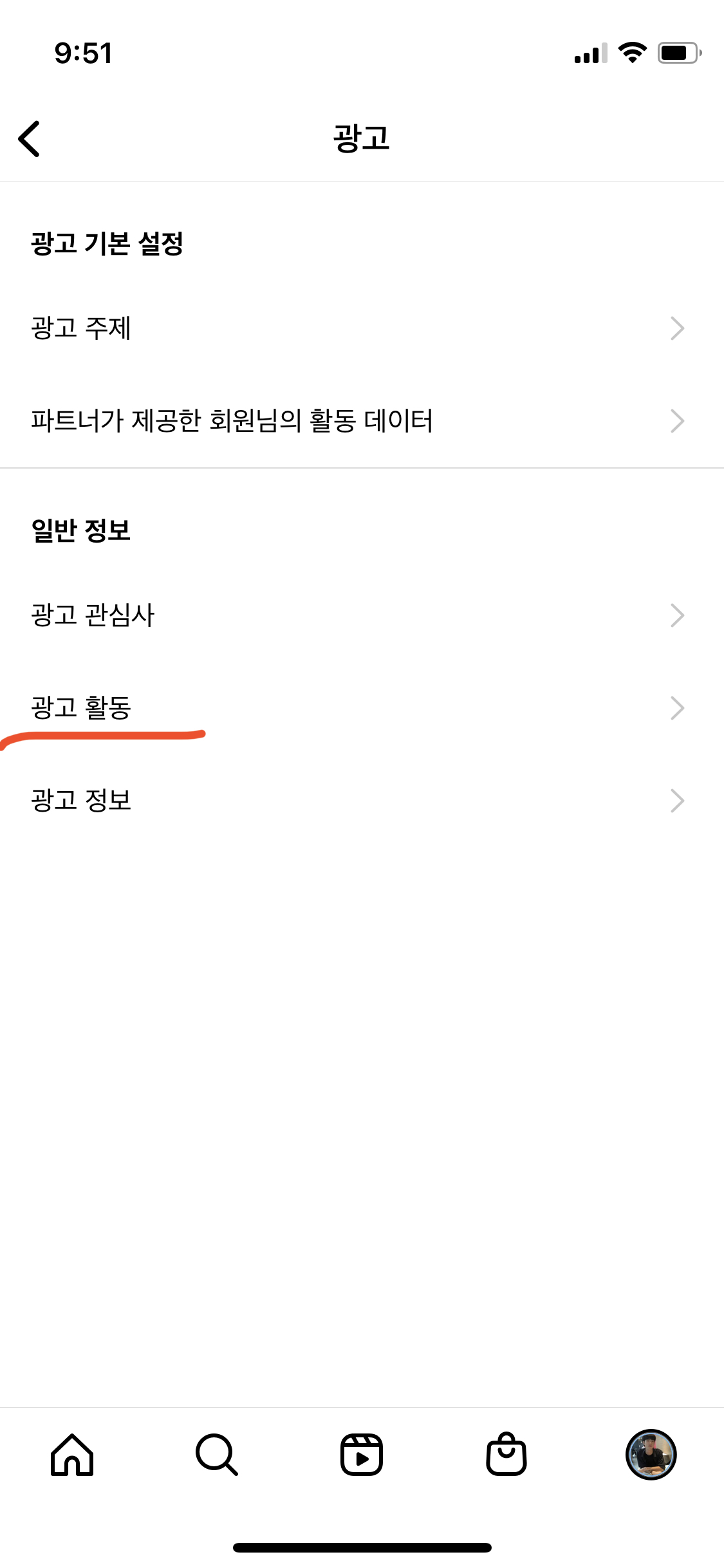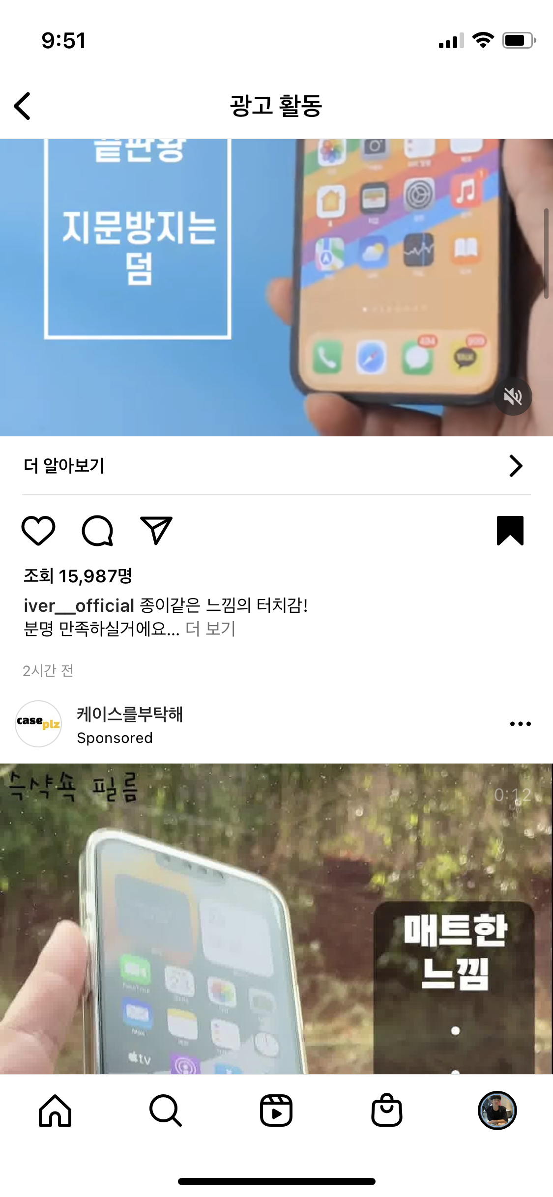 광고 활동으로 들어가면 여태까지 봐왔던 광고들을 다시 볼수 있음