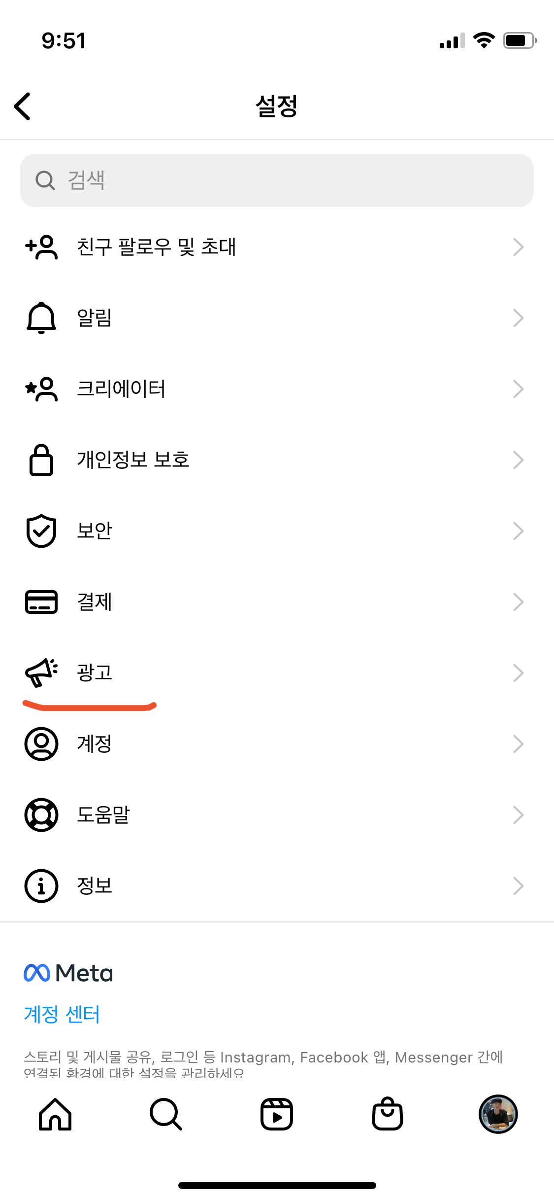 설정 -> 광고